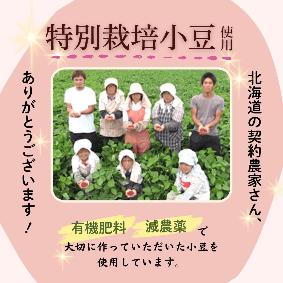 神戸のあんこ屋さんが作った粒あんです。北海道十勝地方の農家さんが有機肥料で土づくりから行い、減農薬で栽培した小豆を使用しています。砂糖は北海道産ビートグラニュー糖を使用し、あっさりと甘すぎないあんこに仕上げました。